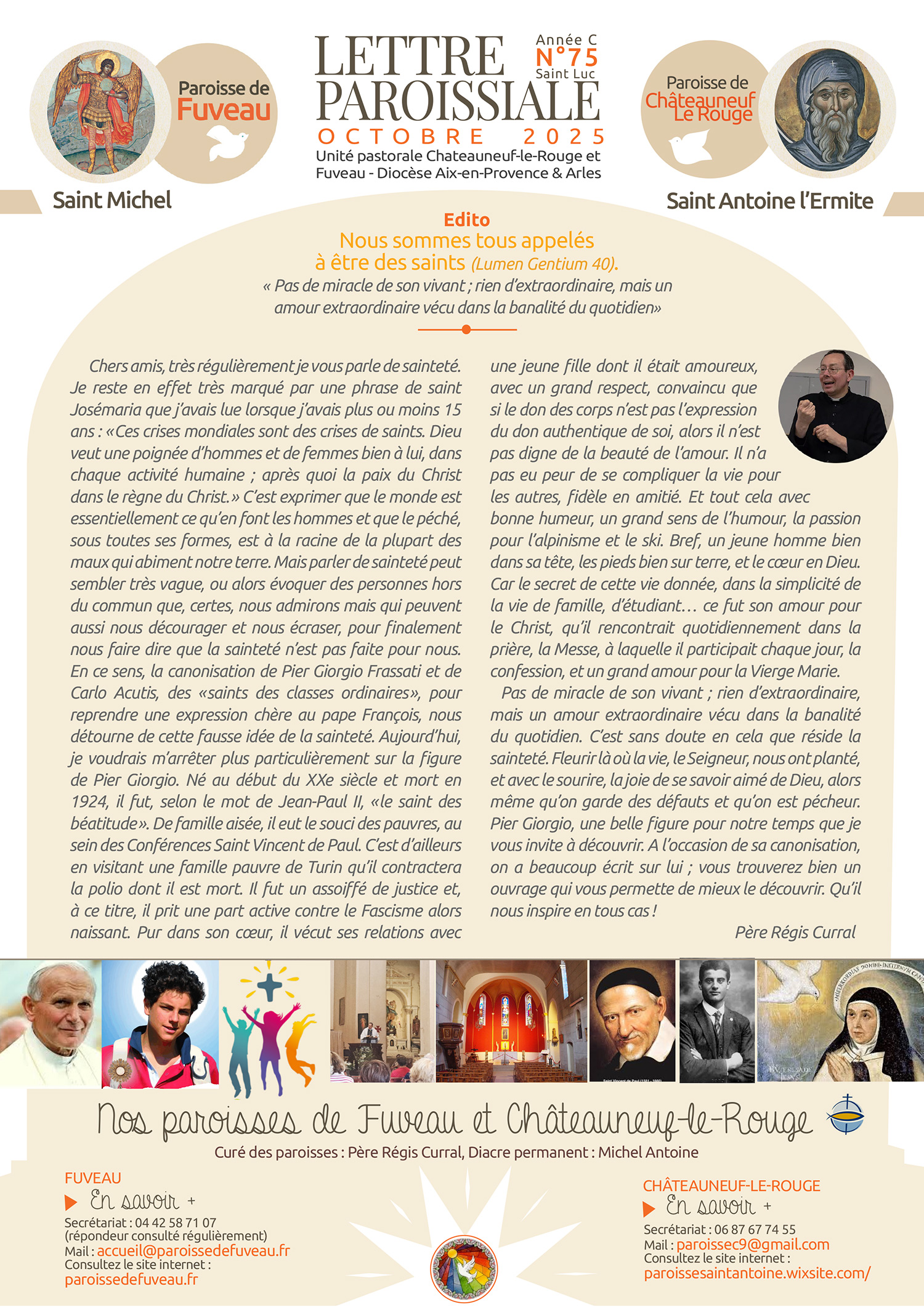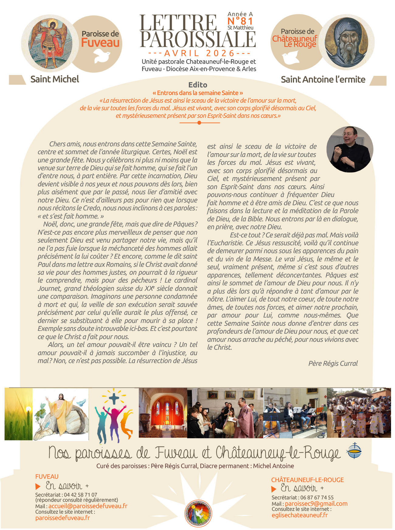 Archives Feuilles Paroissiales 2019, 2020, 2021, 2022, 2023, 2024 FUVEAU sur demande.